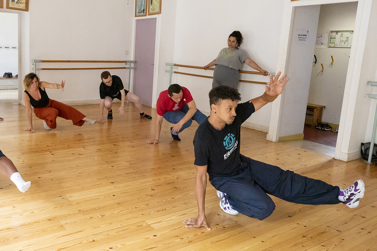 Benin, b-boy de 38 ans, anime l’atelier. Sa passion pour le break dance en tant que danseur l’habite depuis 1998, et depuis maintenant près de 10 ans, l’artiste endosse aussi le rôle d’enseignant.