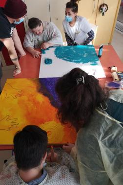 Ce partenariat a également donné naissance à un projet artistique co-construit avec les résidents, dans le cadre de l’appel à projet du Département de la Gironde, L’un est l’autre (2023-2024) où chacun a pu explorer différentes pratiques : danse, slam, graffiti végétal, percussions africaines…