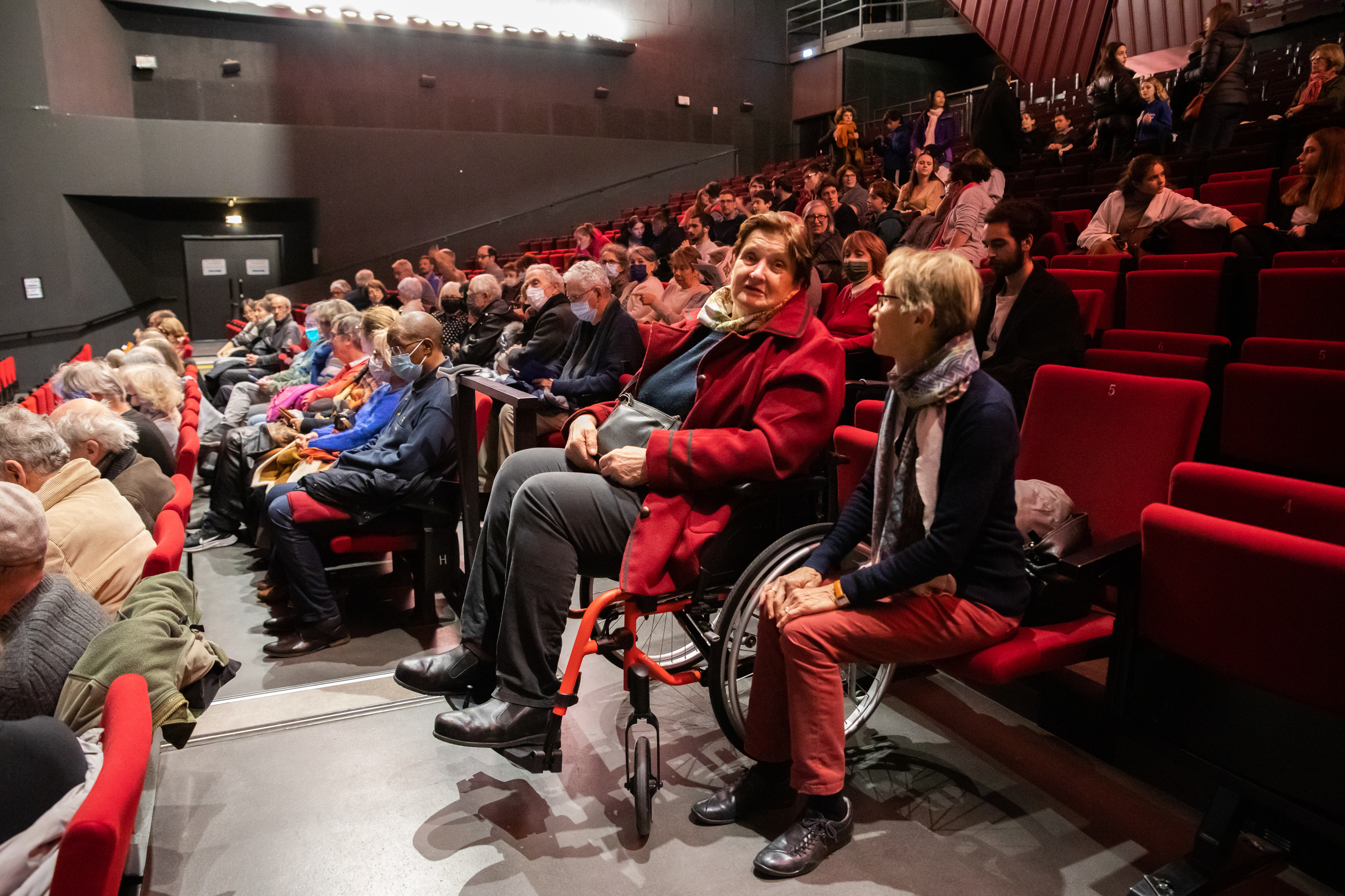 J’aime sortir et j’apprécie les rencontres chaleureuses et la compagnie des bénévoles, nos échanges après le spectacle. Ils sont très investis dans leur mission ! C’est par le bouche-à-oreille que j’ai connu Culture Hors limites et depuis, je choisis parmi les sorties qu’Agathe me propose, surtout des concerts. Ce soir, Evelyne est venue me chercher en voiture mais parfois, je me déplace en Mobibus. Je suis retraitée mais encore très active sur le plan social et j’apprécie que le public soit mélangé, ouvert, différent sans faire de différence.